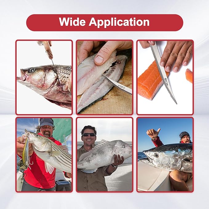 SOKO Electric Fillet Knife Fishing, Cordless fillet knife rechargeable with 4 Ti-Nitride S.S. Coated Non-Stick Blades & 2 Batteries Safe Lock Non-Slip Grip Handle, Safely And Accurately Fillet Fish
